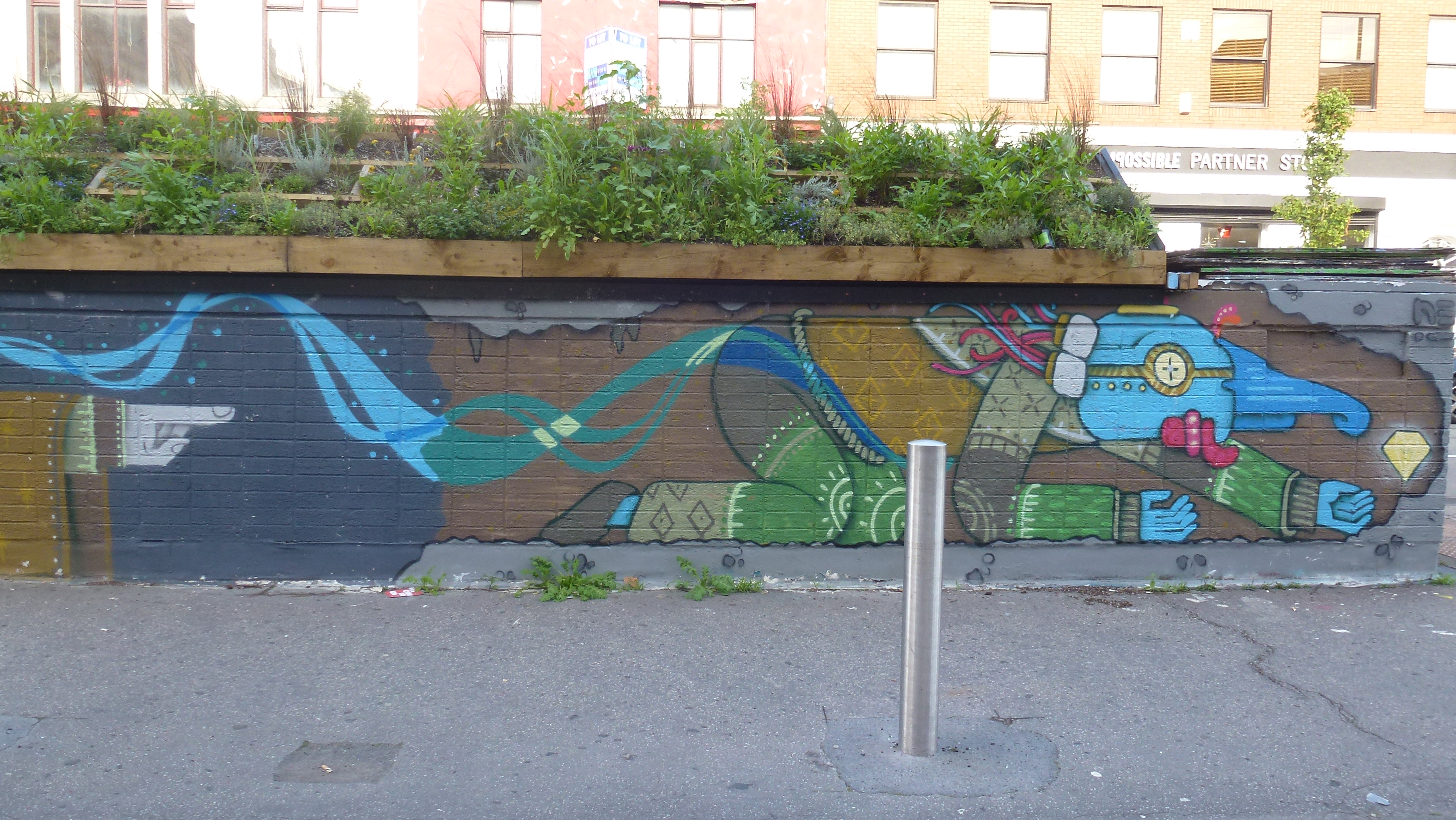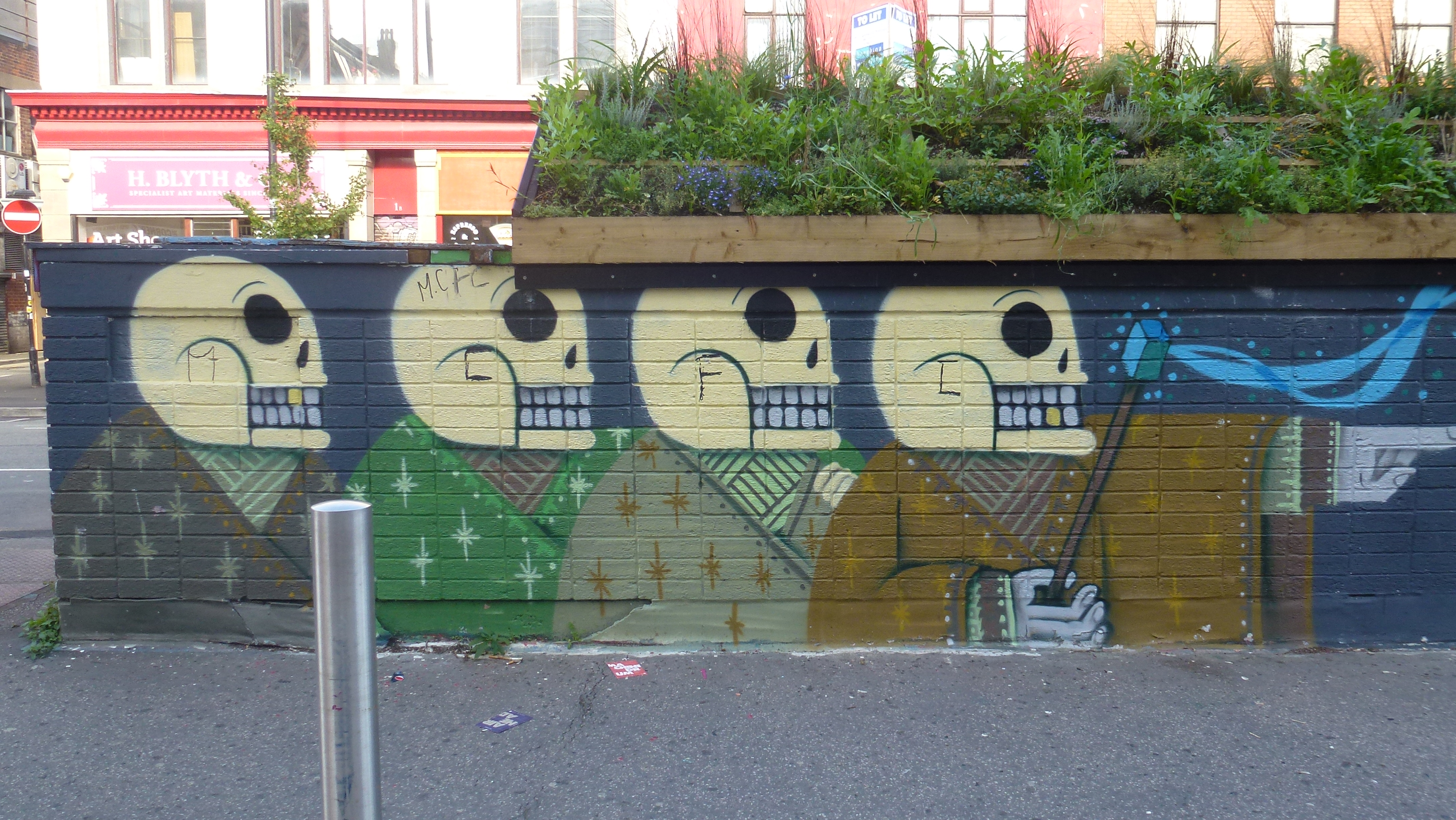 Stevenson Square has once again been redecorated with more amazing street-art supported by the Out House project. The materials are provided by the Fred Aldous arts and craft supplies shop. I’ve included some street-art from slightly outside the square. See previous Street Art post here.