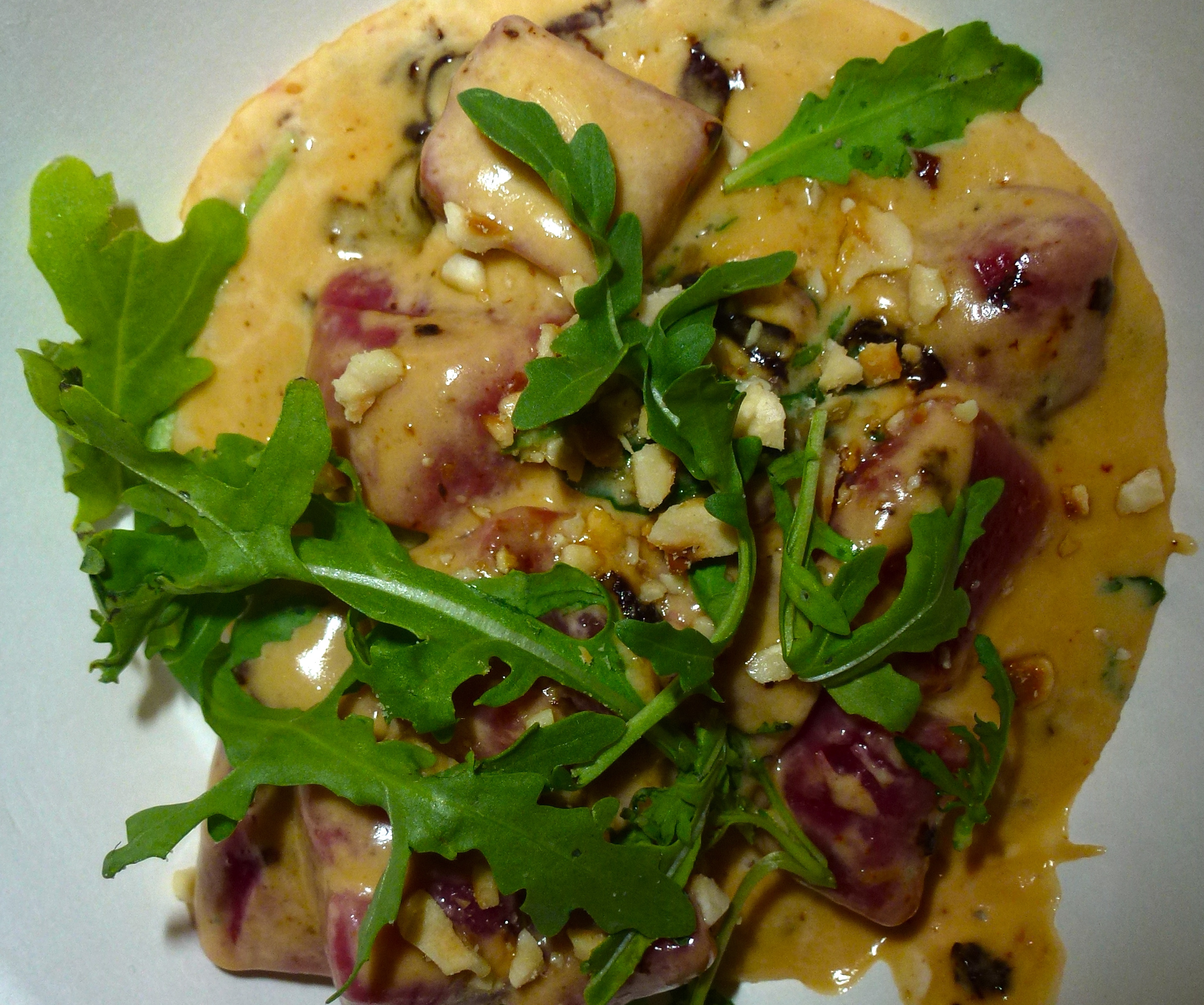 I’ve only ever eaten stuffed gnocchi before so I was excited to try Pasta E Basta’s roasted beetroot version. I’ve never been keen on blue cheese despite The Blokes best efforts to convert me, so I was taking a big leap of faith trying the gorgonzola sauce.