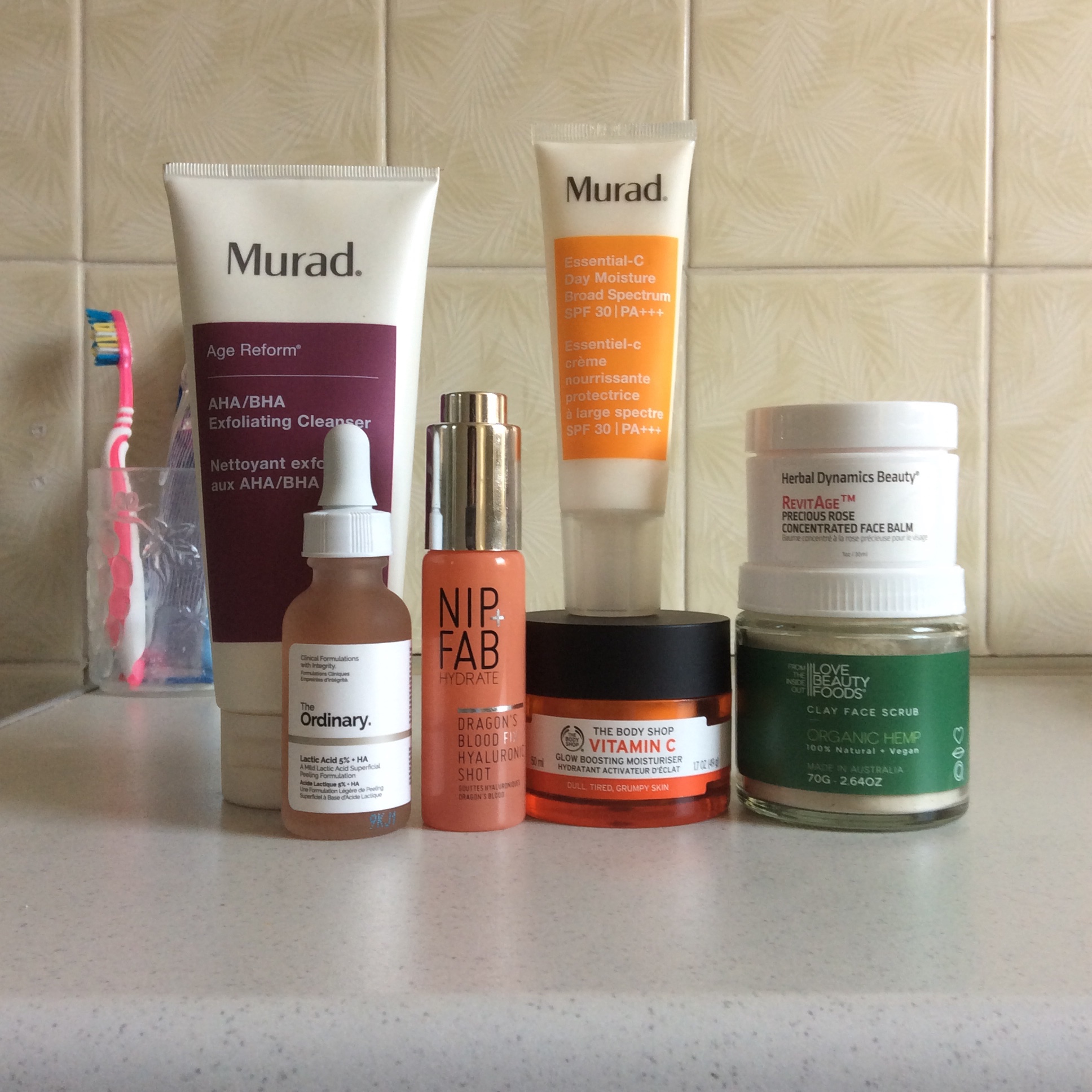 Nip + Fab, Hyaluronic Acid as my skin doesn’t needs it any more, The Ordinary, Lactic Acid isn’t too drying so I have enough moisture. I’m nixing the Murad Cleanser as using the Lactic Acid instead is quicker and simpler. The Clay Face scrub didn’t work great as a mask (I admit I didn’t read it properly) and I certainly don’t need anymore exfoliating!